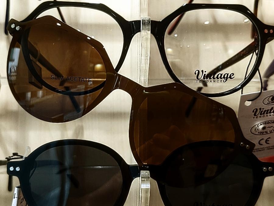 Nouveau: Monture optique "Vintage"+ clip polarisé magnétique : 129 € (clip jaune de conduite nocturne: + 15€)